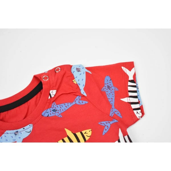 Футболка красная 9072 с рыбками