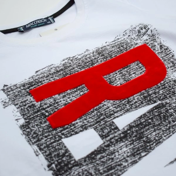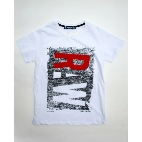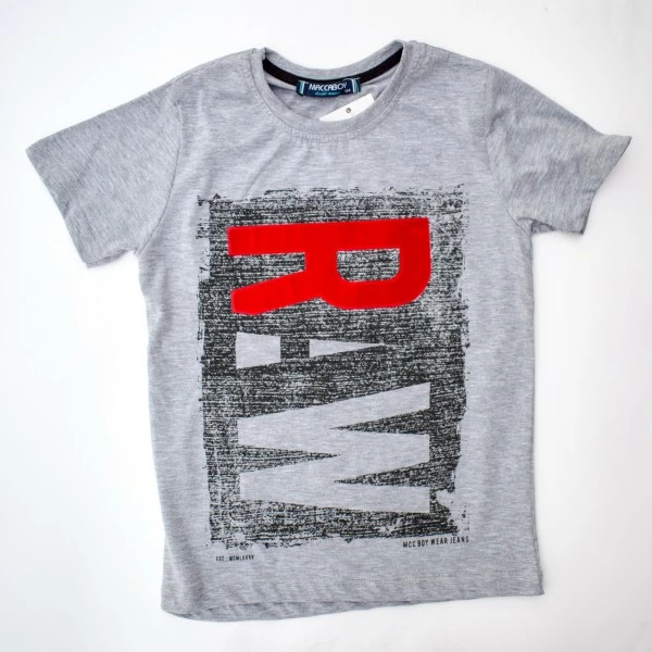 Стильная футболка для мальчика с коротким рукавом и круглым вырезом горловины, спереди по центру качественный принт-надпись .