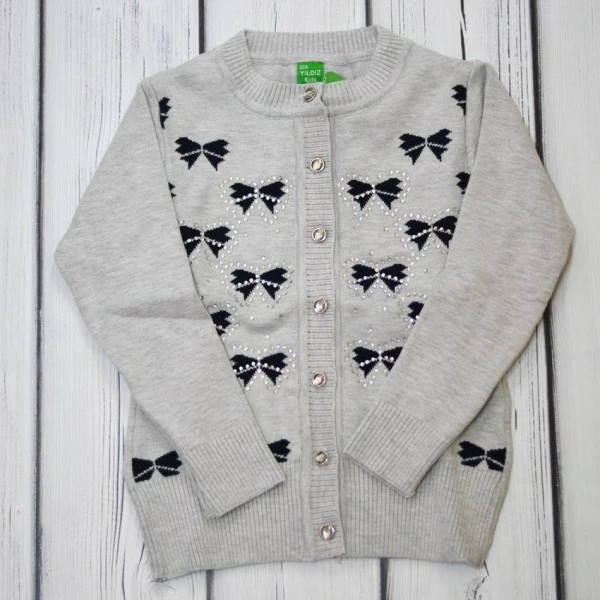 Кофта ADA YILDIZ 2027 на пуговицах серая с бантиками