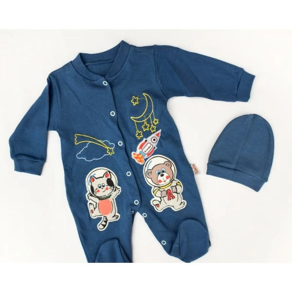 Комплект на выписку из роддома: комбинезон трикотажный, чепчик. Выполнен из мягкого хлопкового трикотажа и имеет спереди застежку на кнопках. Чепчик не только оберегает лобик и ушки ребенка, но и завершает образ.