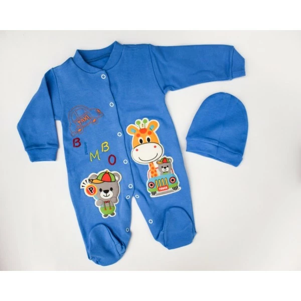 Комплект на выписку из роддома: комбинезон трикотажный, чепчик. Выполнен из мягкого хлопкового трикотажа и имеет спереди застежку на кнопках. Чепчик не только оберегает лобик и ушки ребенка, но и завершает образ.