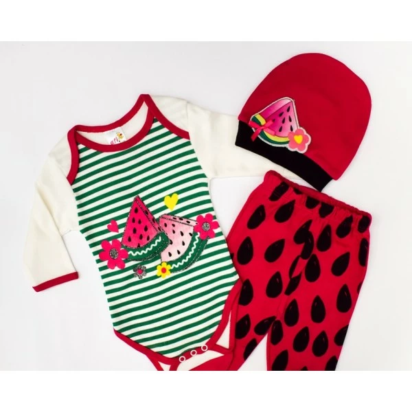 Отличный подарок по случаю выписки из роддома, он выглядит красиво и эффектно. Такой комплект состоит из комбинезона с небольшими кнопками-застежками, боди и чепчика. Выполнен в приятном благородном оттенке экрю, который отлично подходит для ношения малышами.