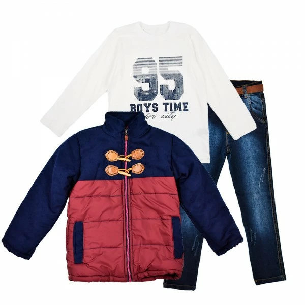 Комплект из утепленной куртки и реглана с джинсами Cusimio 1419 решит проблемы родителей по сбору сына в школу или на прогулку. Все вещи в комплекте сочетаются по цветовой гамме, а разная фактура тканей сделает лаконичный детский образ модным и стильным.
