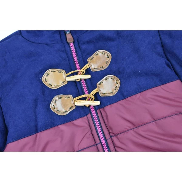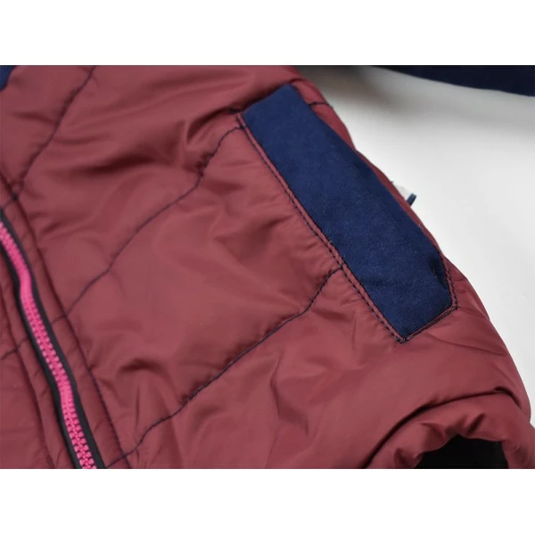 Утепленная куртка выполнена в сочетании синего и красного цветов и застегивается не только на молнию, но и на петли, расположенные в верхней части изделия. Такой механизм застежки обеспечит надежную теплоизоляцию и полное прилегание куртки к шее ребенка.