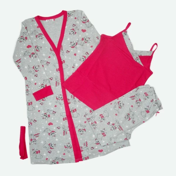 Как известно хорошее настроение ребенка зависит во многом от того насколько был хороший сон ночью. Чтобы создать для ребенка максимально комфортные условия для ночного отдыха, вам непременно понадобится удобная пижама из натурального материала. Представляем Вам великолепный комплект, который состоит из 3 элементов, а именно: халат с пояском, майка и штанишки. Майка на тонких бретельках и штанишки, которые надежно фиксируются по посадке подарят максимальный комфорт во время сна. Дополняет комплект удобный халат с пояском, который согреет Вашу дочку после приема ванной. Пижама выполнена из натуральной ткани, которая не будет вызывать аллергию и раздражать кожу ребенка. Комплект настолько универсальный, что его можно одевать не только для сна, но также носить просто как домашний костюм.