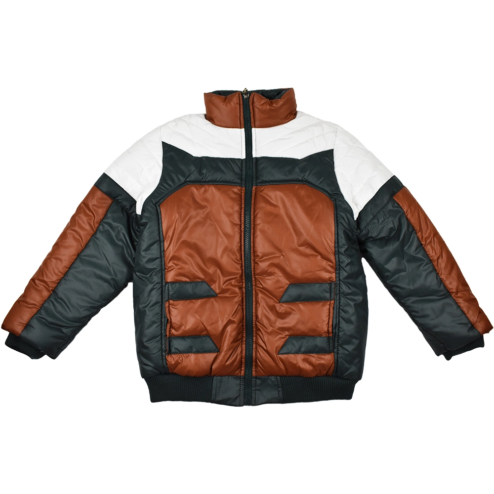 Теплая демисезонная куртка с флисовой подкладкой. Поверхностный слой изделия изготовлен из не продуваемого синтетического материала – полиэстера и оформлен в стильном цветовом сочетании коричневого, зеленого и белого цветов. Между флисовой подкладкой изделия и не продуваемым слоем куртки расположен войлочный наполнитель, который улучшает теплоизоляционные свойства изделия и исключает развитие плесневых грибков на фоне повышенной влажности одежды, которая находится ближе к телу.