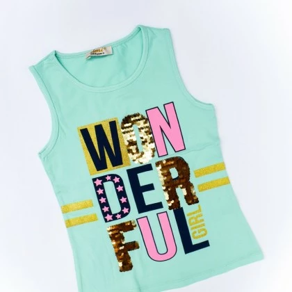 Модель украшена спереди картинкой из пайеток. С помощью такой одежды, ваша девочка сможет создать необычный, стильный образ.