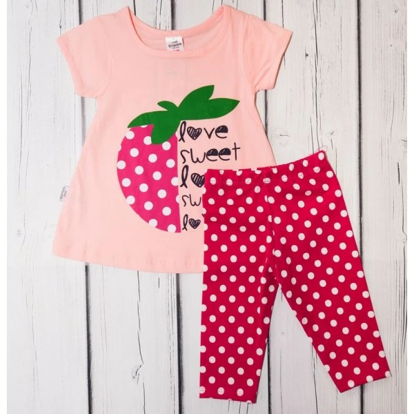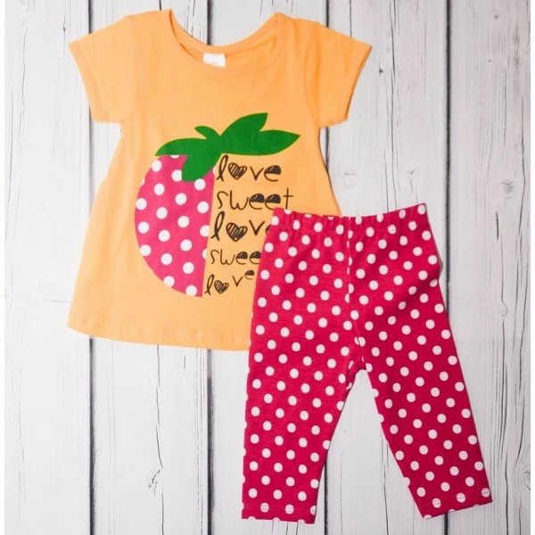 эластан.Яскравий костюм для дівчинки. Лосини в горошок і футболка з
