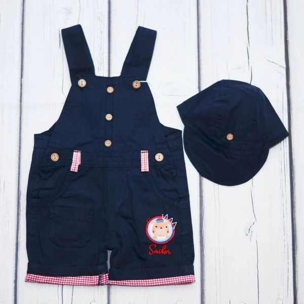 Отличный наряд для вашего малыша для беззаботных теплых дней! Полукомбинезон выполнен из приятного на ощупь хлопкового материала, легко надевается благодаря удобным кнопкам на груди. В комплект входит кепочка.