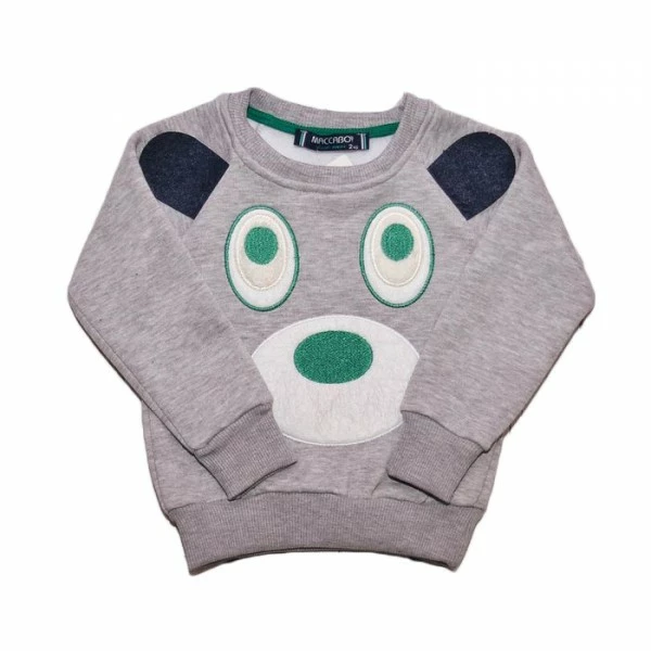 Основной массив рукава реглана MACCABOY 6211 выполнен из мягкого однородного трикотажа серого цвета. На всей передней части реглана расположилась крупная аппликация в виде мордочки медведя с белым носом и синими ушками. Дистальная часть рукавов, горловина и низ реглана MACCABOY 6211 выполнены в виде мелкой полосатой резинки, для того, чтобы кофта хорошо сидела по фигуре ребенка, но при этом не передавливала нежную кожу и не мешала движениям. Ткань, из которой пошит реглан прошла сертификацию согласно международным стандартам и подходит для использования в детской швейной промышленности. Большой процент хлопка в составе изделия гарантирует отсутствие раздражений на коже, предотвращает появление пятен пота и хорошо стирается как вручную, так и в стиральной машине.