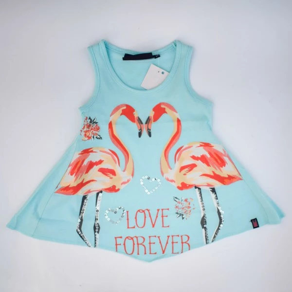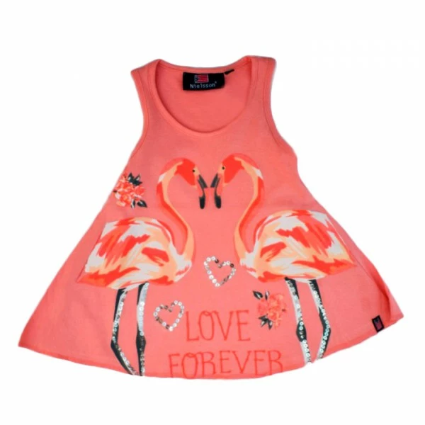 Принт фламинго с декоративной отделкой дополняет образ.