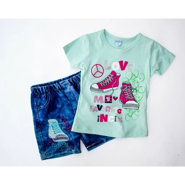 принтом и джинсовые шорты. Состав материала - 100% хлопокКостюм для