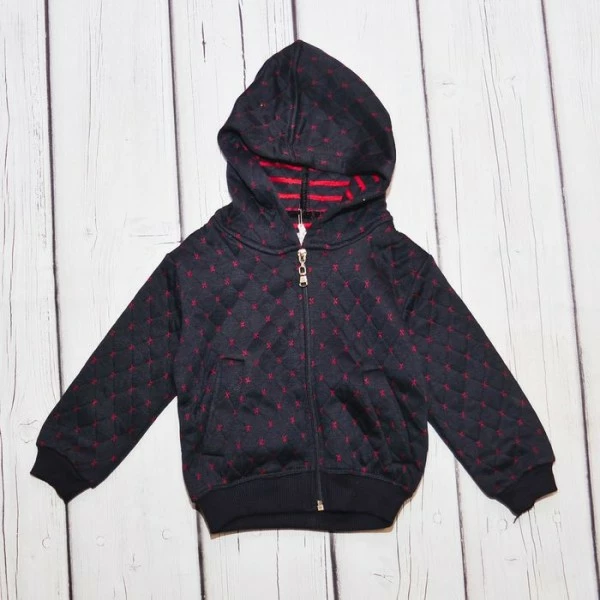 Предотвратить подскакивание толстовки помогут мягкие резинки, с помощью которых оформлена дистальная часть рукавов и низ изделия. Они удерживают кофту на месте при прыжках или других резких движениях, не дают ей подтягиваться и деформироваться, но при этом не передавливают кожу ребенка. Толстовка застегивается на молнию, благодаря чему ее можно носить не только как замену свитеру, но и как верхнюю одежду для весенних вечерних прогулок.