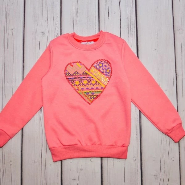 Стильная и нежная толстовка ESSU 67005 станет настоящей находкой для гардероба девочки в холодное время года. ?зделие выполнено в нежных оттенках насыщенных цветов и украшено принтом - сердце, которое заполнено разноцветным геометрическим орнаментом. Вещь сочетается практически со всеми детскими базовыми вещами и подойдет для комбинирования со спокойными брюками и юбками классических расцветок, так и с яркими комбинезонами. В плотной толстовке ребенок не замерзнет даже в самую холодную погоду и будет выглядеть одновременно красиво и тепло. Длина изделия позволяет перекрыть поясницу вместе с поясом брюк или талией юбки, а качественная и очень приятная на ощупь ткань, которая состоящая из синтетического влолокна будет сохранять привлекательный внешний вид максимально долгое время.